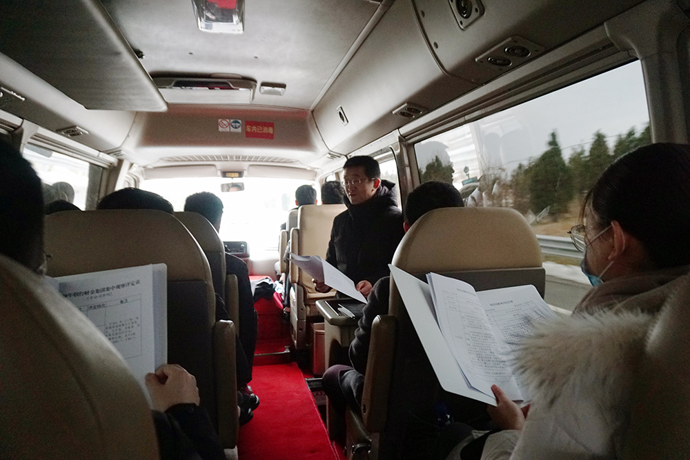 在前往觀摩現(xiàn)場途中,集團(tuán)綜合部副部長安少帥向市委組織部、市財(cái)政局和集團(tuán)領(lǐng)導(dǎo)詳細(xì)介紹本次觀摩活動(dòng)的行程安排。