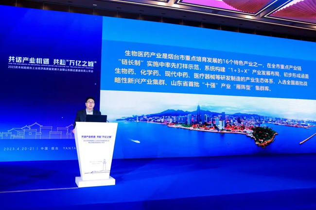 隨后,煙臺市市場監(jiān)督管理局總工程師張波圍繞煙臺生物醫(yī)藥產(chǎn)業(yè)發(fā)展態(tài)勢、細(xì)分賽道、重點(diǎn)項目、優(yōu)惠政策及投資環(huán)境等,向在場嘉賓進(jìn)行分享解讀,并期待與會的優(yōu)秀企業(yè)與投融資機(jī)構(gòu)來到煙臺投資興業(yè),共謀發(fā)展。煙臺依山傍海、氣侯溫和、產(chǎn)業(yè)發(fā)達(dá)、交通便利,擁有發(fā)展醫(yī)藥健康產(chǎn)業(yè)得天獨(dú)厚的優(yōu)勢。目前,煙臺全市擁有醫(yī)藥類企業(yè)147家,其中主營業(yè)務(wù)收入過10億元的企業(yè)11家,過億元的60家,上市公司6家,獨(dú)角獸企業(yè)1家,瞪羚企業(yè)11家,省專精特新“小巨人”企業(yè)17家,單項冠軍企業(yè)8家,6家企業(yè)進(jìn)入國內(nèi)醫(yī)藥工業(yè)、商業(yè)領(lǐng)域百強(qiáng),連續(xù)三年產(chǎn)業(yè)全業(yè)態(tài)主營業(yè)務(wù)收入突破千億元。