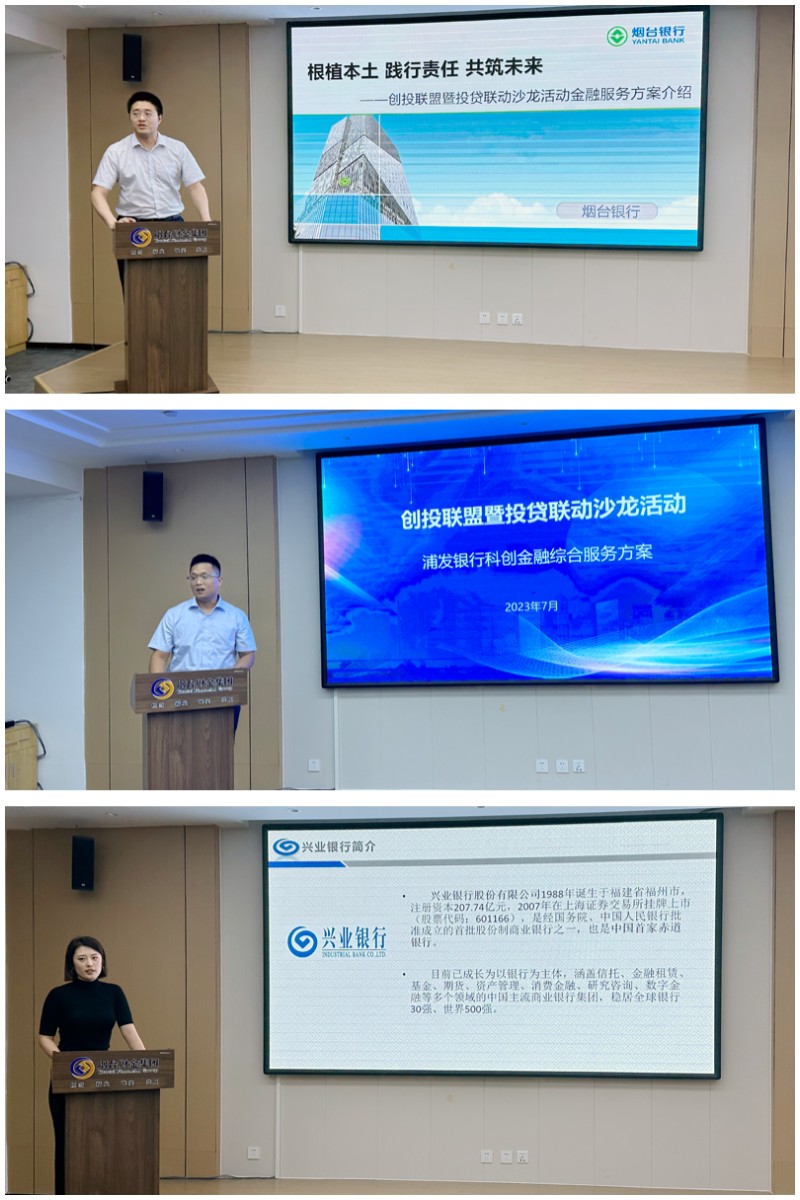 隨后,煙臺(tái)銀行、興業(yè)銀行、浦發(fā)銀行分別根據(jù)自身優(yōu)勢(shì)介紹了特色金融服務(wù)產(chǎn)品。各與會(huì)銀行表示,“投貸聯(lián)動(dòng)”機(jī)制與銀行支持新興產(chǎn)業(yè)和優(yōu)質(zhì)企業(yè),推動(dòng)綠色金融、科技金融的發(fā)展目標(biāo)“不謀而合”。