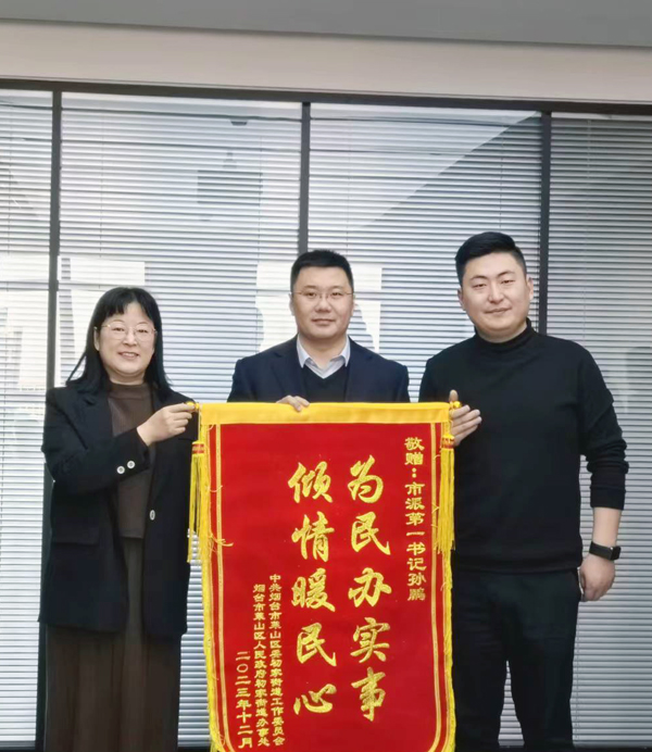 1月10日,萊山區(qū)初家街道黨工委副書記、辦事處主任張志遠(yuǎn)和界牌村黨支部書記、村委會(huì)主任黃世會(huì)一行將印有“扶志扶貧共舉 全心全力為民”“駐村幫扶辦實(shí)事 情系群眾解民憂”字樣的錦旗送到煙臺(tái)財(cái)金集團(tuán),對(duì)集團(tuán)和市派第一書記孫鵬對(duì)界牌村給予的大力支持和真情幫扶表示衷心感謝。集團(tuán)黨委副書記、工會(huì)主席連瑞渝,紀(jì)委書記房瑞田、黨群工作部負(fù)責(zé)人安少帥及市派第一書記孫鵬接受錦旗,并與包村單位深入開展交流座談。