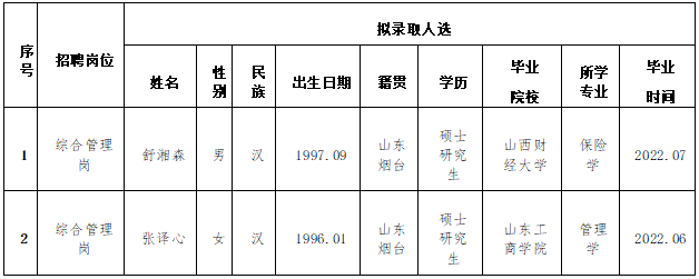 按照集團(tuán)7月11日發(fā)布的招聘公告,經(jīng)簡(jiǎn)歷投遞、資格審查、筆試、面試、集體決策等環(huán)節(jié),擬確定部分校招崗位錄取人選,現(xiàn)予以公示,公示期為5個(gè)工作日(8月1日至8月5日)。本次公開(kāi)招聘崗位中綜合管理崗已招滿,此崗位招聘終止。